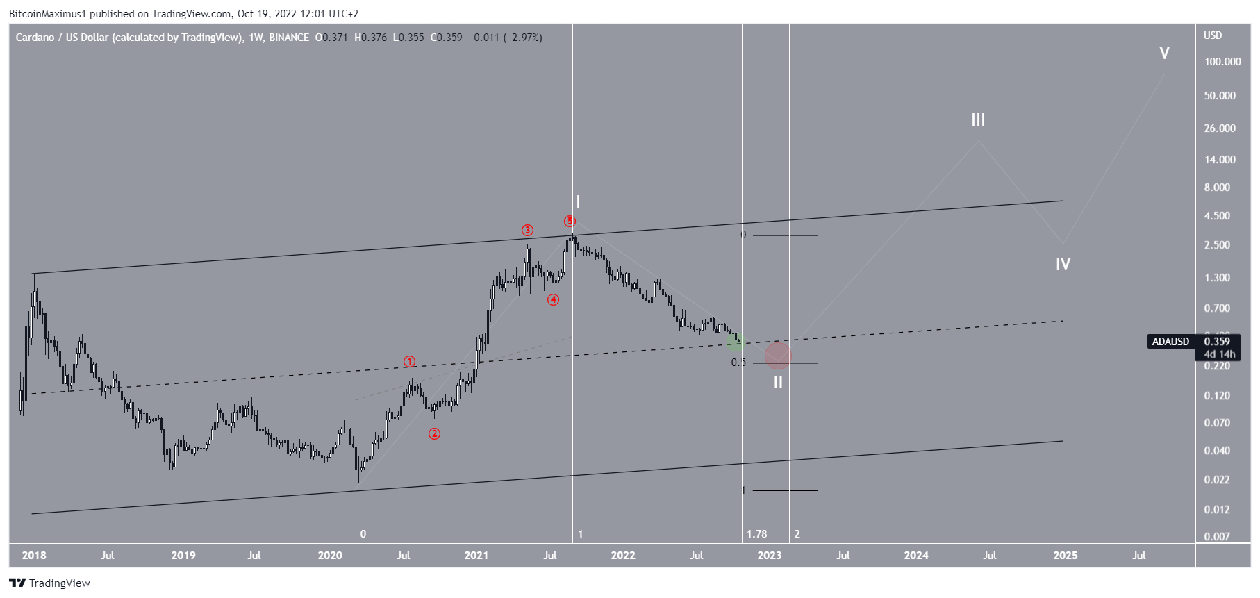 Giá Cardano (ADA) đã đạt đến vùng hỗ trợ dài hạn. Tuy nhiên, các mức Fib và số lượng sóng cho thấy dự kiến sẽ có nhiều xu hướng giảm trước khi giá đảo chiều tăng. Dự đoán giá ADA sẽ đạt 10 USD vào năm 2025.