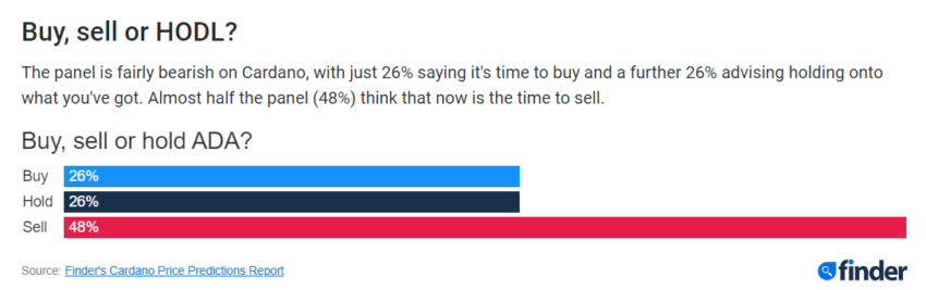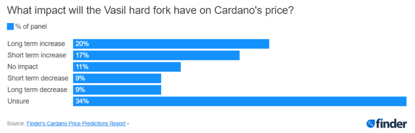17% chuyên gia cho rằng đây sẽ chỉ là mức tăng trong ngắn hạn. 20% số người tham gia báo cáo của Finder cho rằng Cardano cuối cùng sẽ tăng giá trong dài hạn.