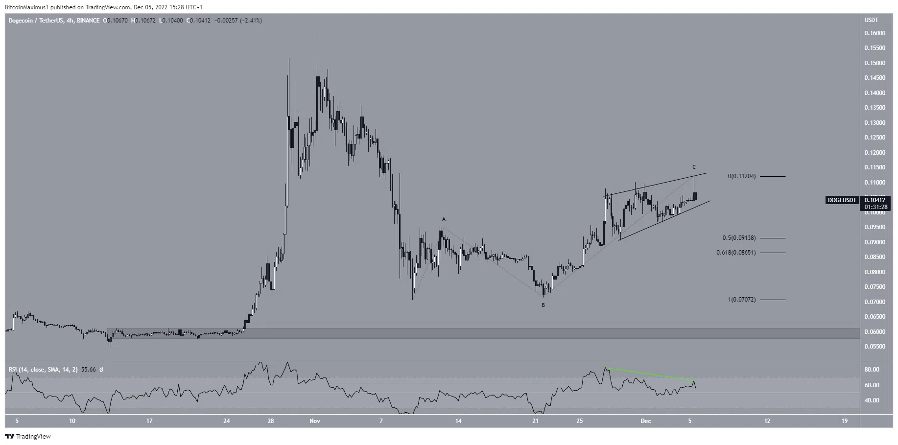 Nếu xảy ra đột phá, khu vực hỗ trợ gần nhất sẽ nằm trong khoảng từ 0.087 USD đến 0.091 USD. Điều này được tạo ra bởi các mức hỗ trợ Fibo thoái lui 0.5-0.618. Tuy nhiên, nếu toàn bộ chuyển động kể từ ngày 09/11 là một mô hình điều chỉnh ABC, thì giá Dogecoin có thể giảm xuống mức hỗ trợ tiếp theo là 0.06 USD.