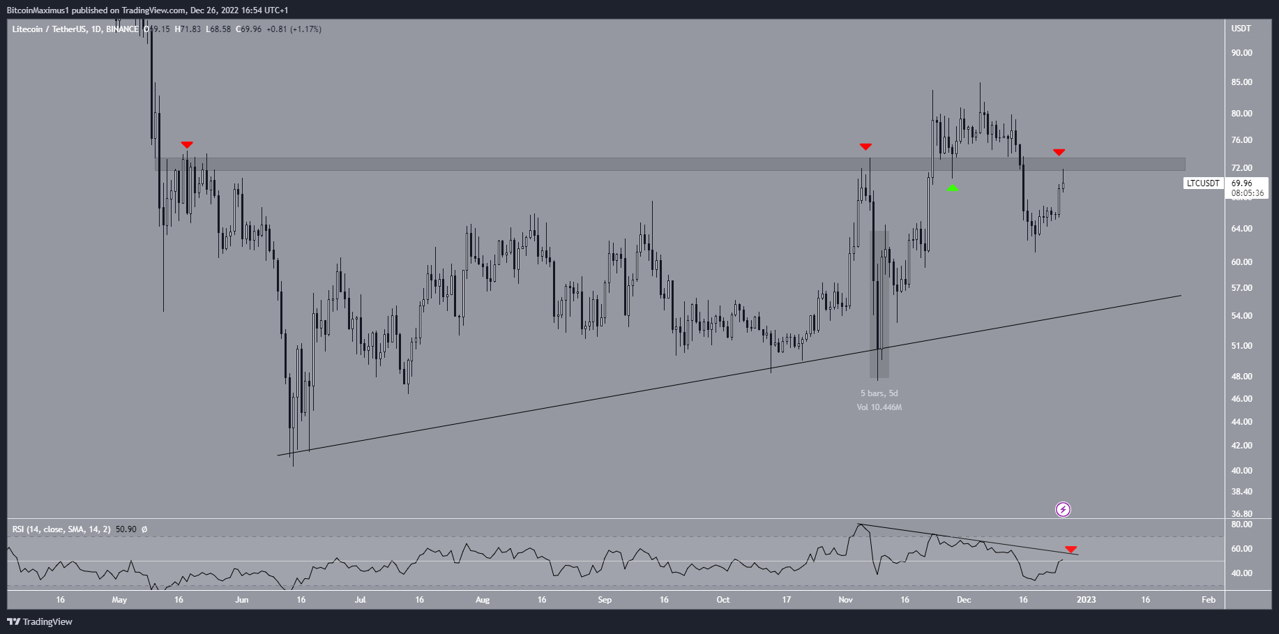 Dự đoán giá Litecoin: Nỗ lực đột phá vùng 72.5 USD