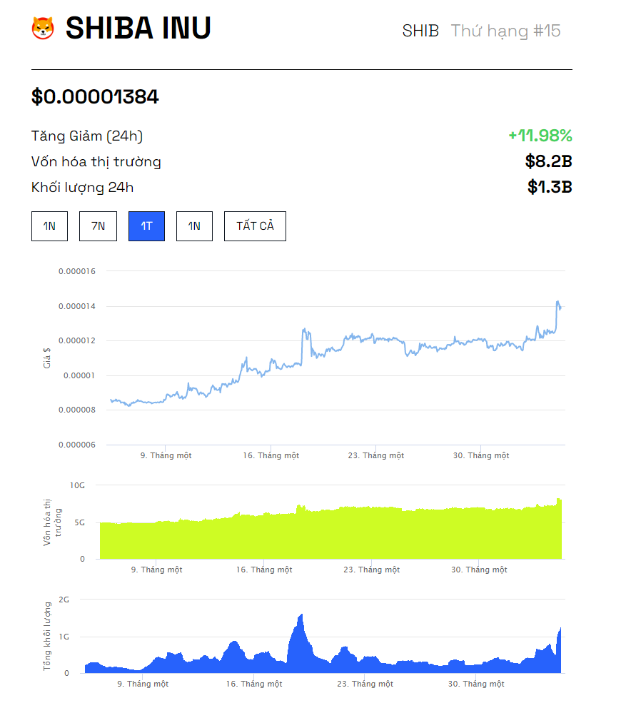 - Giá SHIB: 0.00001384 USD.