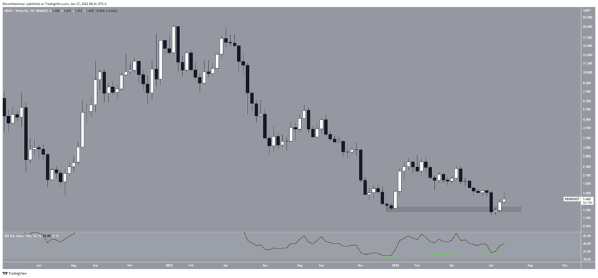 Giá NEAR đã giảm xuống mức đáy mới hàng năm là 1.14 USD vào ngày 10/6. Mặc dù điều này ban đầu dường như gây ra sự cố, nhưng NEAR đã bật lên gần như ngay lập tức sau đó và phục hồi, xác nhận khu vực ngang 1.20 USD là hỗ trợ.