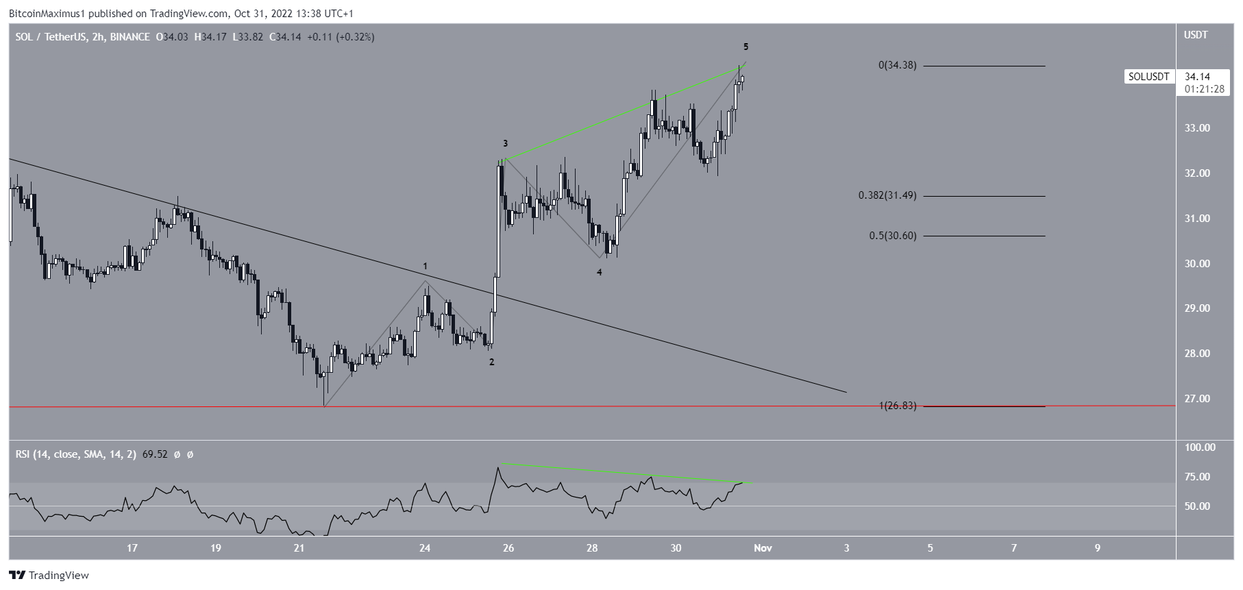 Cả biểu đồ hàng tuần và hàng ngày đều ủng hộ dự đoán tăng giá SOL. Điều này cho thấy xu hướng đi lên dự kiến sẽ tiếp tục. Tuy nhiên, biểu đồ ngắn hạn hai giờ cho thấy khả năng xảy ra sự thoái lui.