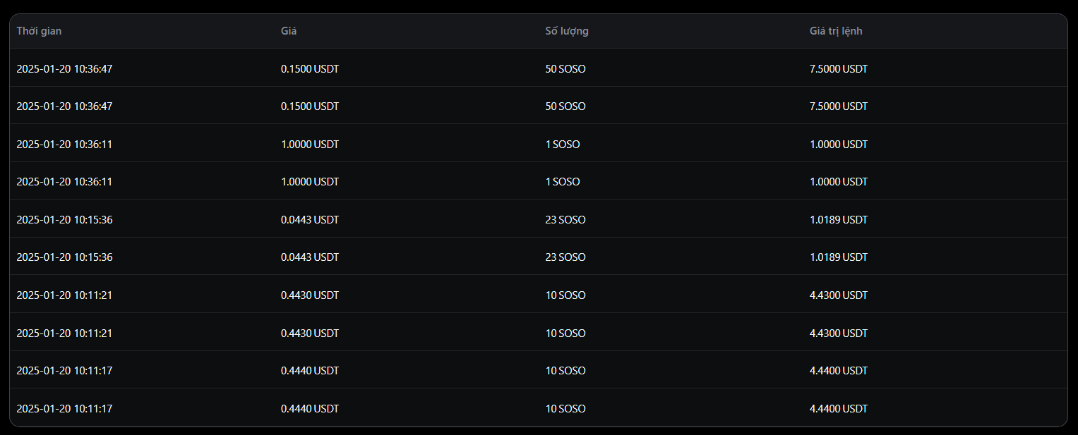 Tuy nhiên, nếu theo dõi dữ liệu giá SOSO trên Pre-market (thị trường dành cho các token sắp niêm yết) của sàn MEXC, thì SOSO đang được giao dịch với giá có biên độ rất rộng. Trước ngày 18/1, SOSO có giá quanh 0.5 USD, nhưng đến thời điểm bài viết, đã có giao dịch SOSO khớp lệnh với mức giá chỉ 0.15 USD.