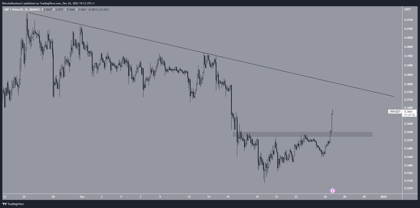 Thật thú vị, sự phục hồi trùng hợp với thời điểm một lượng lớn giao dịch XRP đến từ một số cá voi được cho là sẽ khiến giá giảm. Giao dịch lớn nhất trong số này là giao dịch trị giá 112 triệu USD từ Binance đến một ví không xác định. Nếu xu hướng tăng tiếp tục, vùng kháng cự gần nhất sẽ là 0.385 USD. Ngoài ra, có vẻ như giá XRP đang giao dịch bên trong một tam giác đối xứng.