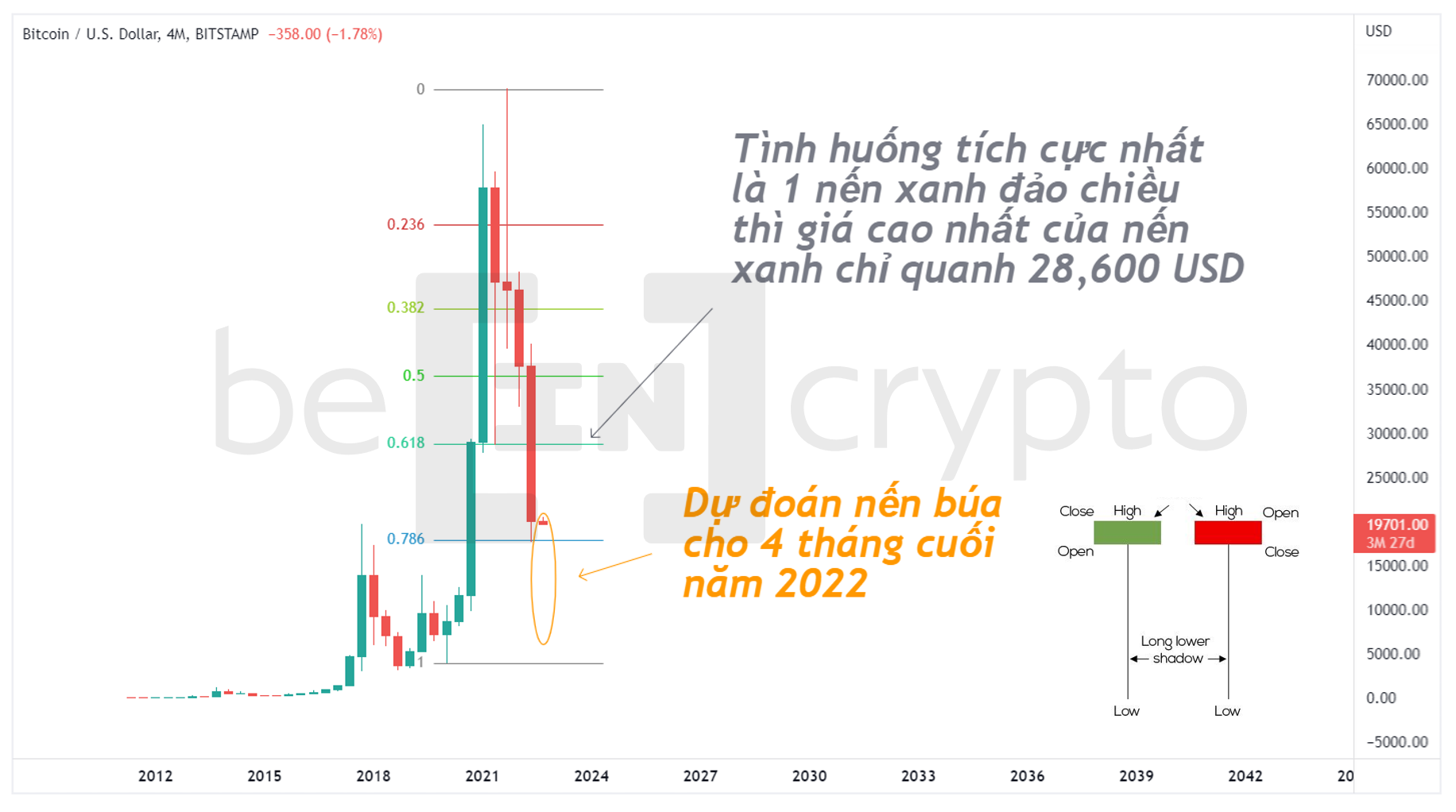 Lấy quan sát trên làm cơ sở, chúng ta có thể dự đoán nến Bitcoin 4 tháng cuối năm 2022 như sau: