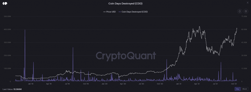 Sponsored Sponsored- Chỉ số on-chain CDD (Coin Days Destroyed) là chỉ số đầu tiên mà chúng ta nên lưu ý. Có hai kịch bản xảy ra với chỉ số on-chain này. Nếu chỉ số này biến động lớn, điều đó có nghĩa là các đồng coin lâu năm đang được di chuyển. Ngược lại, nếu chỉ số này biến động ít, mọi thứ ngược lại. Hình dưới đây cho thấy hiện đang ở mức thấp trong tuần qua.