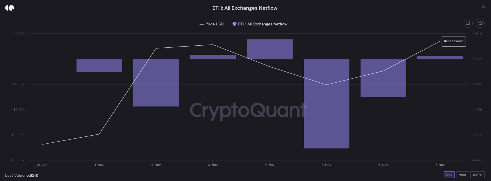 Sponsored SponsoredTheo chỉ số, ETH: All Exchanges Netflow, một lượng lớn ETH đã rời đi vào các ngày 2/11, 5/11 và 6/11. Một phần ETH đó được đưa lên các sàn giao dịch phái sinh, tuy nhiên, có vẻ như số lượng này là không quá nhiều.