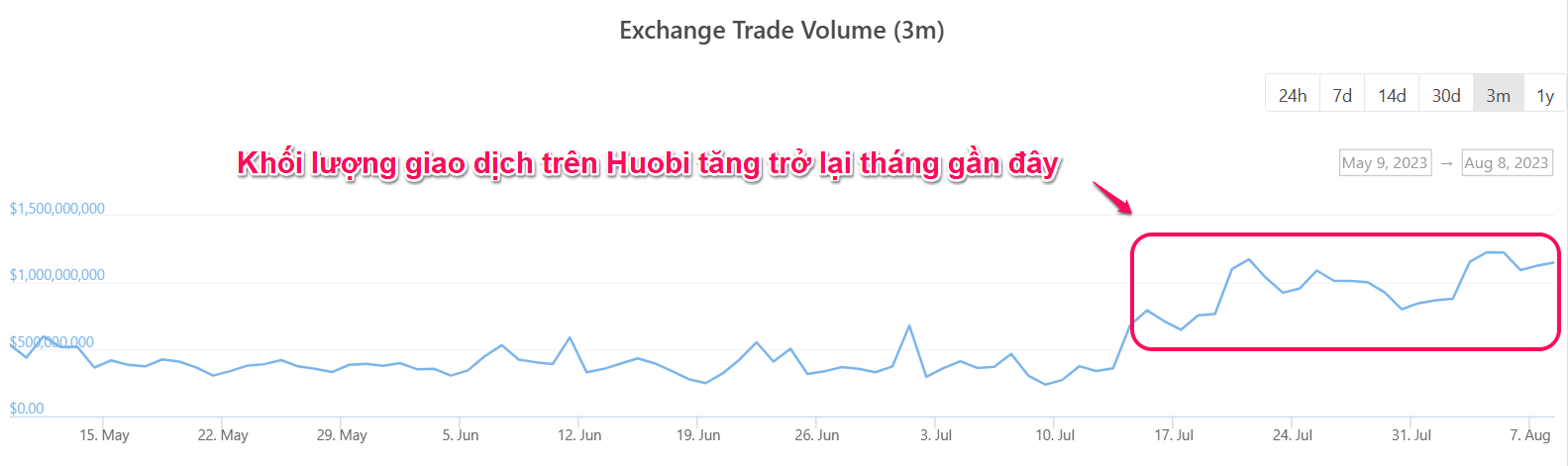 Dữ liệu từ Coingecko cho thấy, khối lượng giao dịch trên Huobi trong những tuần gần đây tăng trở lại.