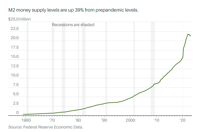 Nguồn cung M2 “chỉ vừa giảm” 1.7% so với cùng kỳ năm ngoái. Đây là mức giảm lớn nhất được ghi nhận và là lần đầu tiên suy giảm trong nhiều tháng trở lại đây. Mặc dù vậy, nguồn cung M2 vẫn cao hơn 39% so với trước đại dịch.