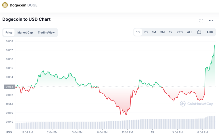 Sau tuyên bố mua DOGE của Musk đã xảy ra gần đây. Chúng ta sẽ phải chờ xem liệu thị trường có phản ứng bằng cách ngăn chặn sự sụt giảm của tiền điện tử meme hay không. Quan sát biểu đồ, bạn có thể thấy giá DOGE đã tăng chóng mặt kể từ thời điểm gần như chính xác khi người đàn ông giàu nhất thế giới tweet ủng hộ Dogecoin lúc 08:19 EST.
