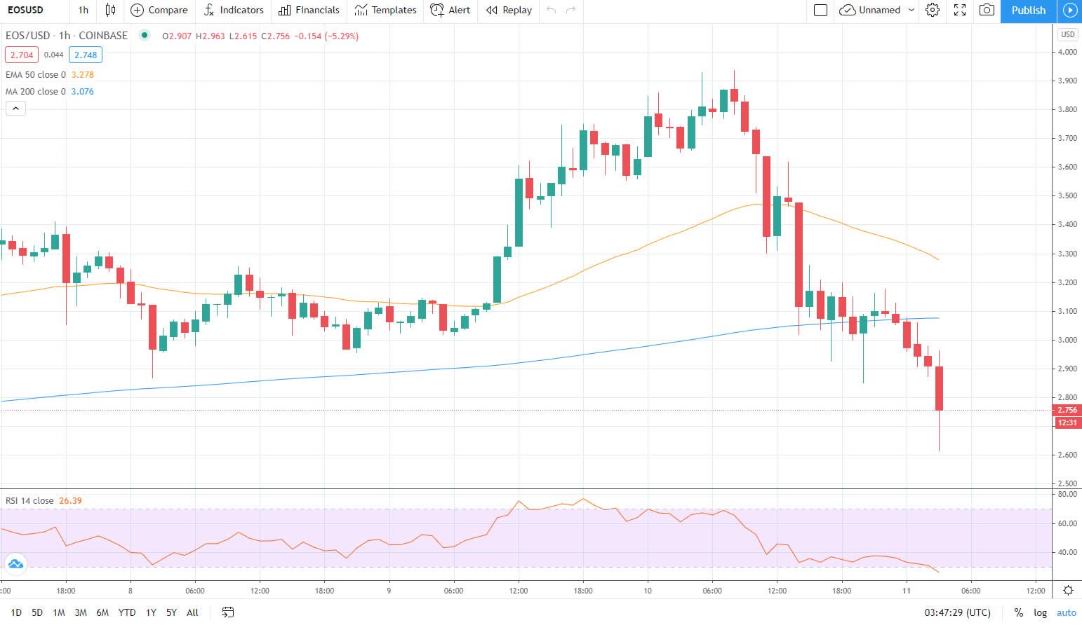 Kể từ khi thông báo được công khai, giá EOS đã giảm mạnh từ mức đỉnh điểm vào Chủ nhật là 3,92 USD. Tại thời điểm viết vài, giá giảm còn 2,68 USD.