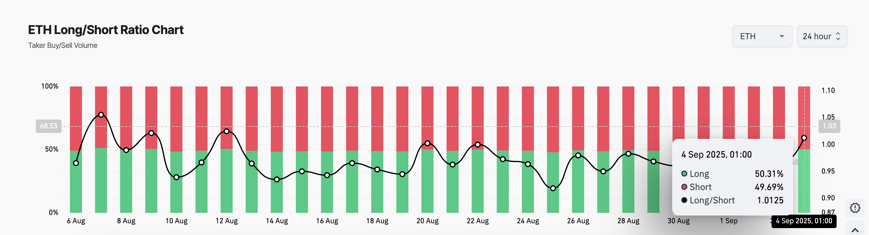Với tỷ lệ của ETH hiện tại là 1.01, thị trường cho thấy một xu hướng tăng nhẹ nhưng đáng chú ý. Điều này càng khẳng định khả năng tăng giá tiềm năng.