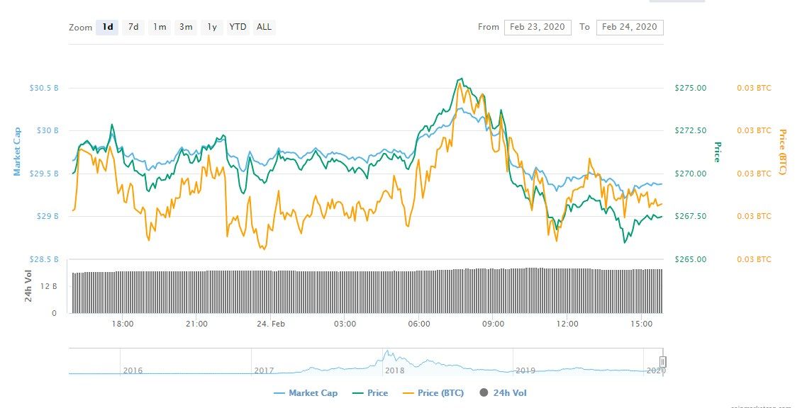 Khi Bitcoin vụt tăng lên cao hơn vào đầu ngày sáng nay thì sau đó Ethereum cũng tiếp bước. Đồng tiền điện tử dẫn đầu thị trường đã chạm một chân đến mốc 10.000 USD. Còn Ethereum cũng không kém, vượt qua ngưỡng 275 USD, chạm đến mốc 278 USD.