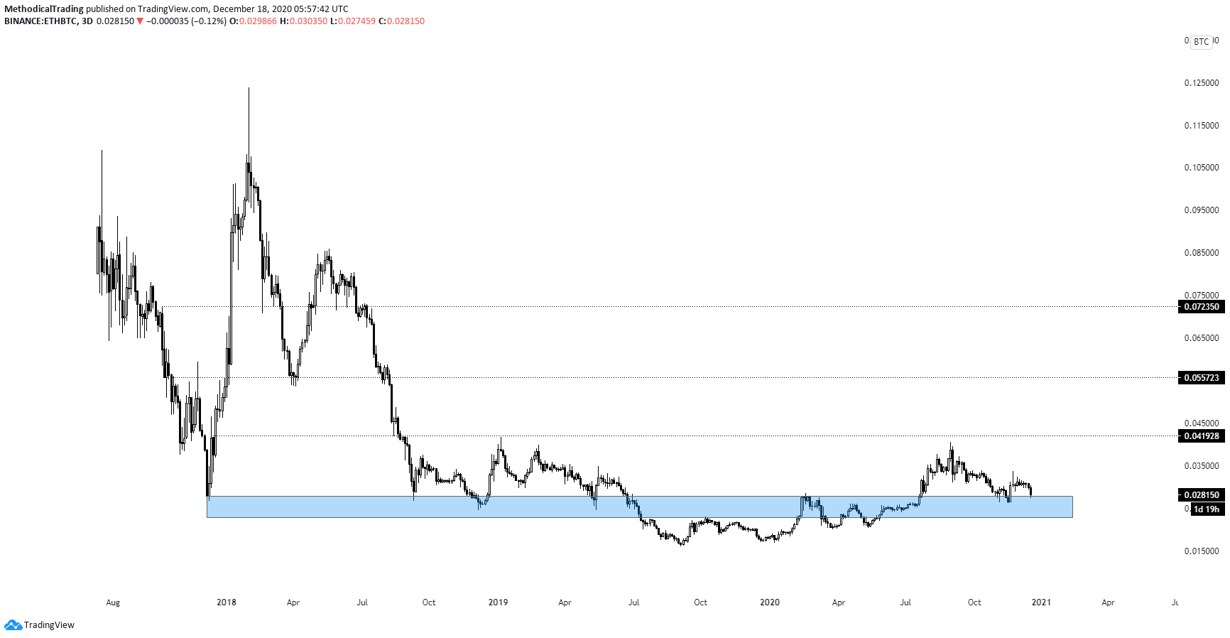 “ETH- 3D: Cuối cùng sẽ nhanh chóng thôi chúng ta sẽ bắt đầu xu hướng một lần nữa trong cặp giao dịch với BTC. Nếu tôi phải cá cược, đây sẽ là một trong những lần cuối cùng chúng ta trở lại khu vực nhu cầu này. Và tôi không nhìn thấy ETH đang rơi xuống dưới.”