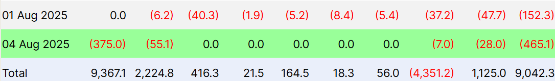 Các quỹ ETF của Ethereum đã trải qua lượng rút vốn trong một ngày lớn nhất kể từ khi ra mắt hơn một năm trước. “ETH ETF Black Monday” đã chứng kiến hơn 465 triệu USD bị rút ra, cho thấy tâm lý tiêu cực của nhà đầu tư khi bước vào tháng 08. Điều này được cộng thêm bởi 152 triệu USD rút ra vào thứ Sáu, nâng tổng số cho tháng lên 617 triệu USD.