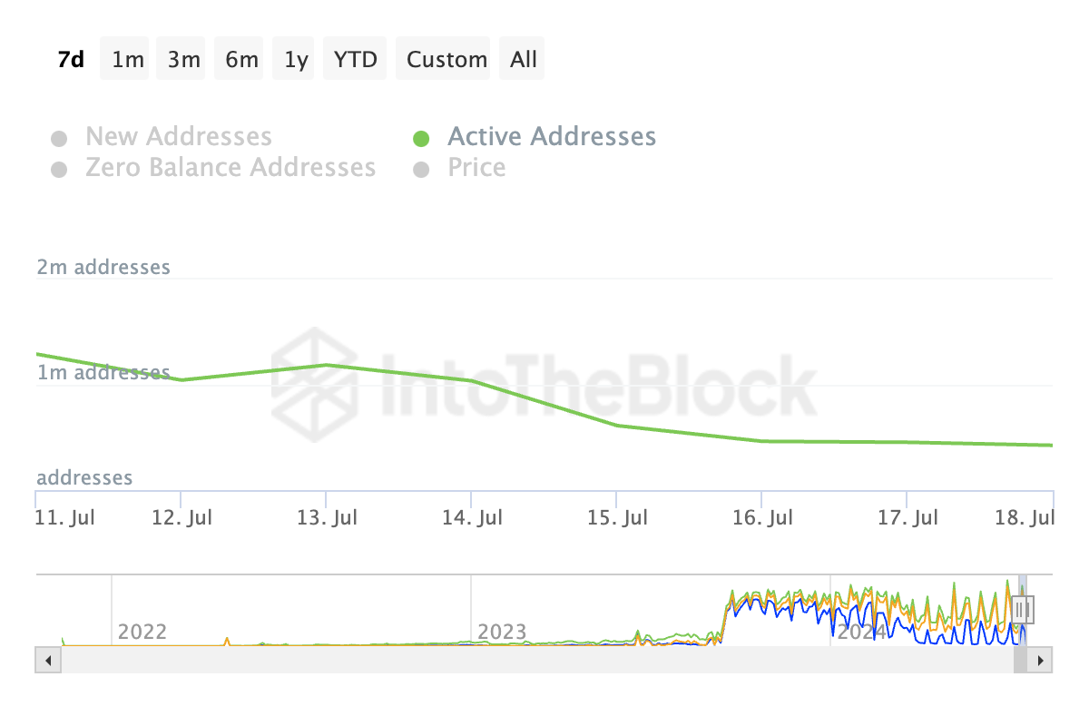 Khi hoạt động của người dùng trên mạng lưới của nó giảm, ETH chứng kiến sự tăng lên trong nguồn cung lưu thông. Dữ liệu trên chuỗi từ IntoTheBlock xác nhận điều này đã xảy ra đối với mạng lưới Proof of Stake (PoS).