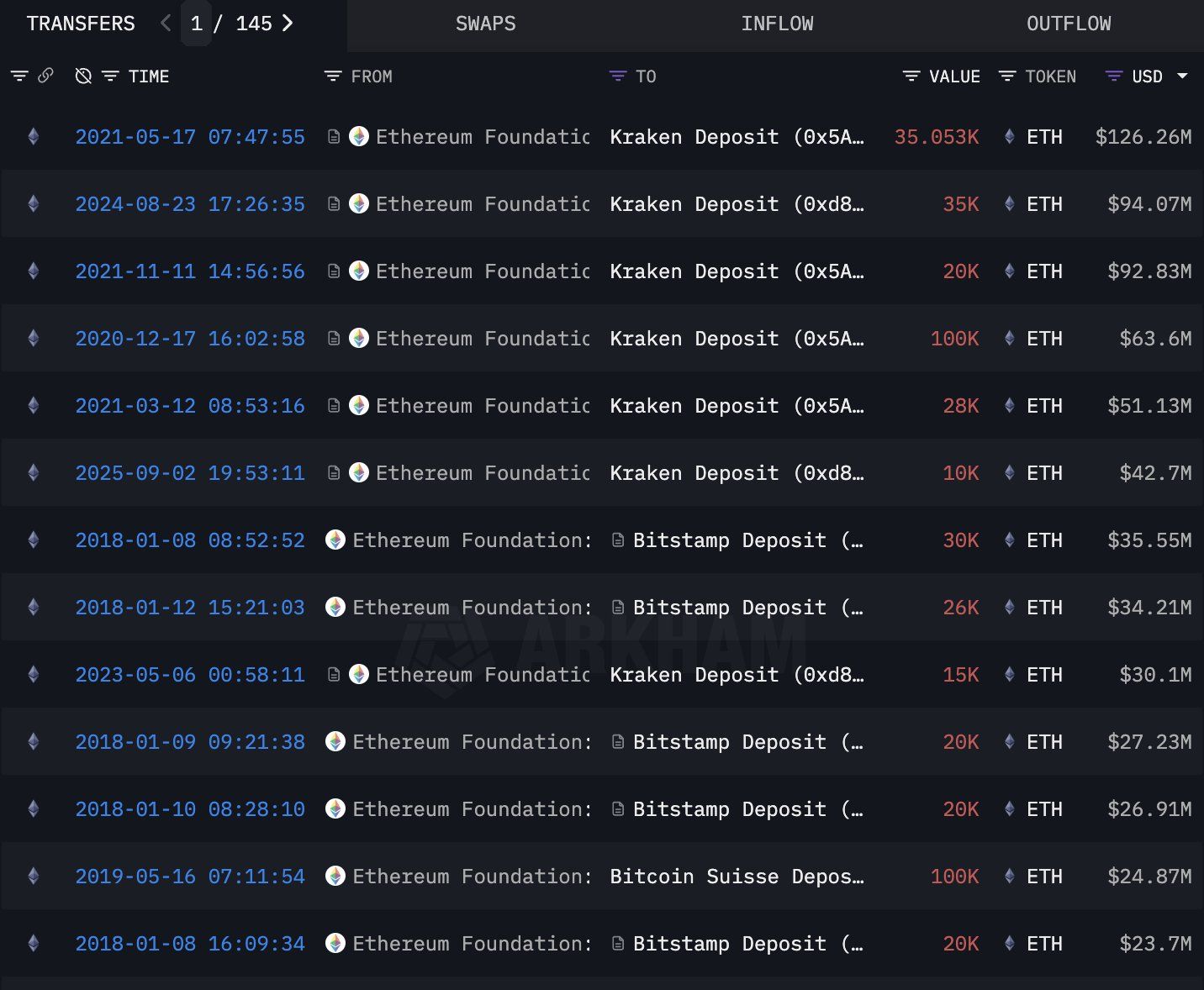Động thái này được công khai sau các đợt bán ETH trước đó của EF. Theo thống kê từ các nhà quan sát, các ví được gắn thẻ EF đã gửi khoảng 2.78 tỷ USD đến CEX trong 10 năm qua.