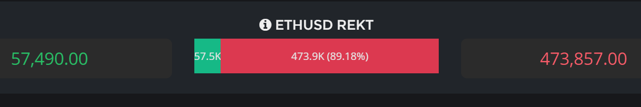 Theo cryptometer, đã có hơn 473,9 nghìn ETH vị thế bán đã được thanh khoản trên BitMEX (chiếm 89%) trong 24 giờ qua.