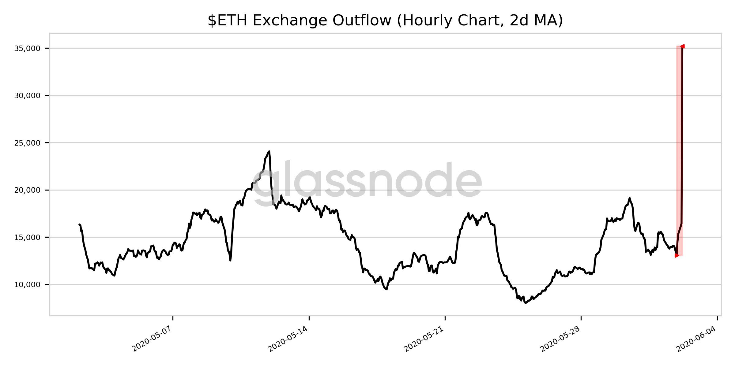 Glassnode cho biết đã có một số lượng lớn ETH rời khỏi các sàn giao dịch trong 24 giờ qua, tăng 169%.