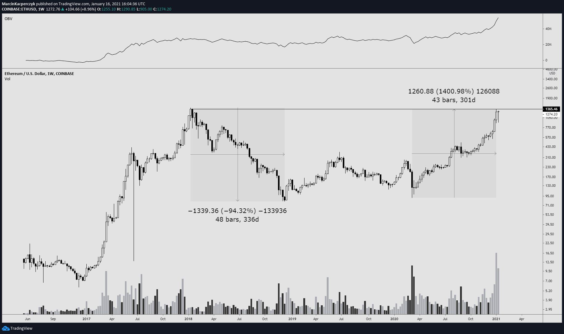 “Một trong những cái nhìn cuối cùng của ETH trước khi đạt mức cao mọi thời gian mới. Đó là diễn biến giá của nó mới tuyệt vời làm sao cùng với một gợi nhắc nhẹ nhàng là cặp ETH/BTC vẫn chưa đột phá.”