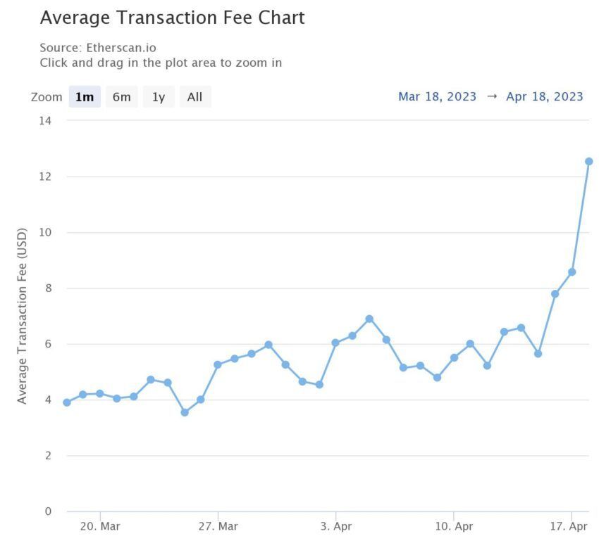 SponsoredHơn nữa, giá gas Ethereum đã tăng trong 24 giờ qua. Theo Etherscan, phí mạng trung bình đã tăng 140% kể từ cuối tuần.