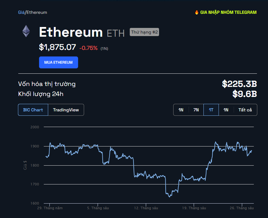 Ethereum được giao dịch giảm 1% trong ngày ở mức 1,865 USD tại thời điểm viết bài. Tiền điện tử này đã ba lần đạt đỉnh 1,900 USD trong tuần qua nhưng không đạt được mức tâm lý 2,000 USD.