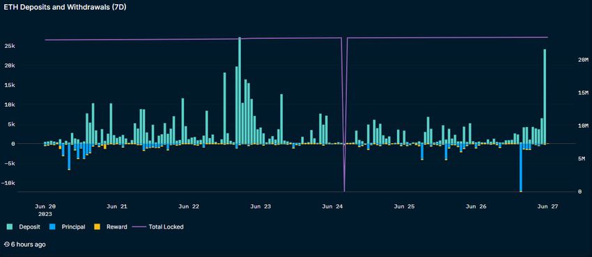 Vào ngày 27/6, người đồng sáng lập và Giám đốc điều hành của CryptoQuant, Ki Young Ju đã đăng một bản cập nhật về trạng thái Ethereum staking.
