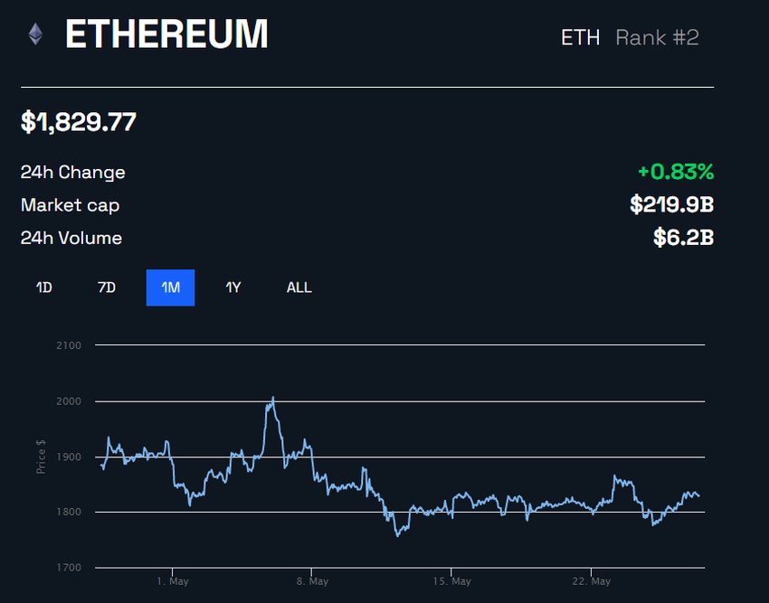 Kể từ khi tính năng rút tiền được kích hoạt, ETH đã đạt đỉnh hơn 2,000 USD vào đầu tháng 5 trước khi giảm xuống mức hiện tại. Kể từ đó, tài sản chủ yếu được giao dịch trên 1,800 USD.