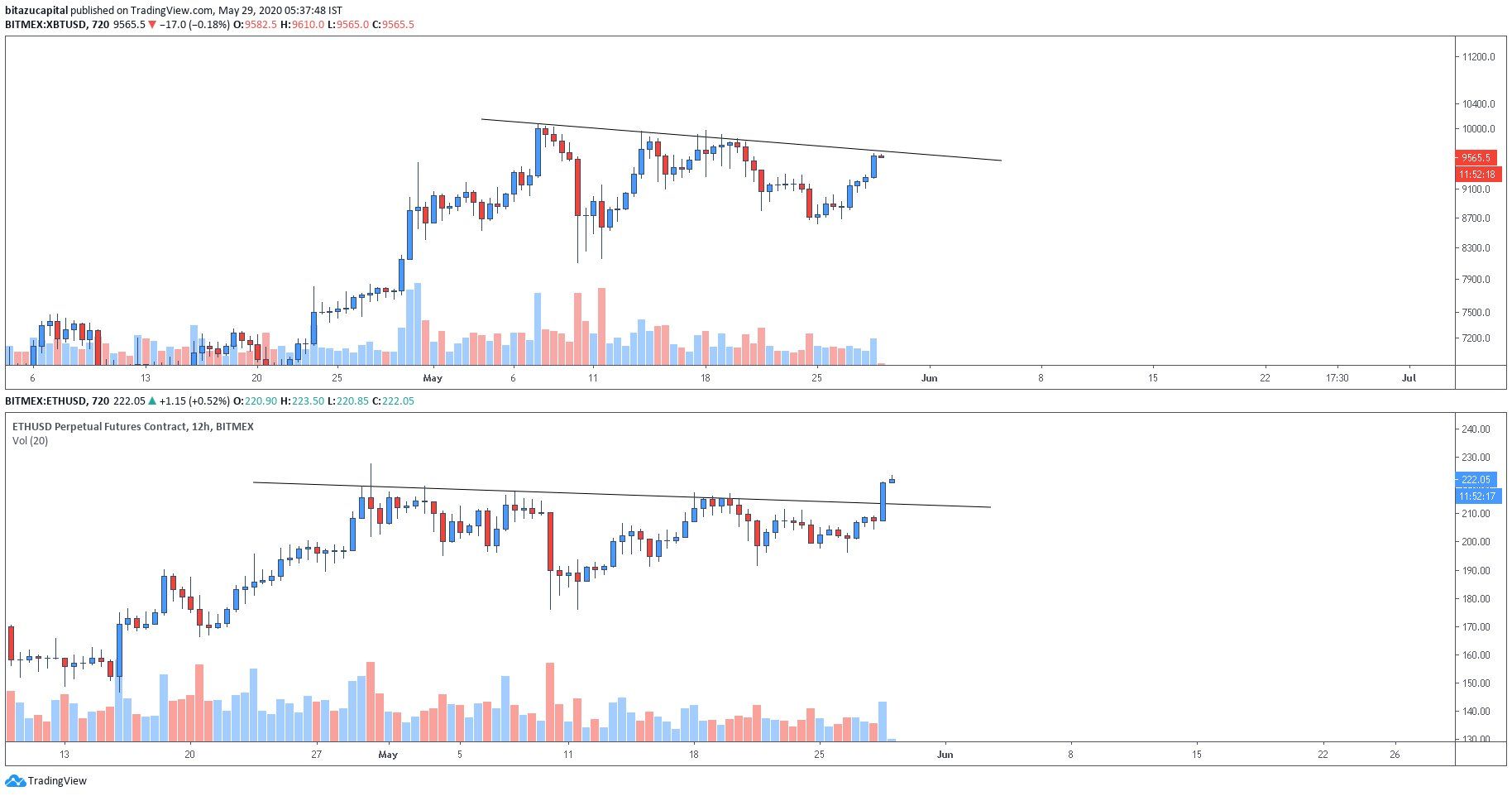 ETH đã dẫn dắt BTC đi lên cao hơn trong đợt hồi phục tháng 2. Hiện tại, có vẻ như BTC cũng sắp sửa vượt qua đường xu hướng đi xuống. Nếu xảy ra thì có thể BTC sẽ hướng tới 10.000 USD trong những ngày tới.