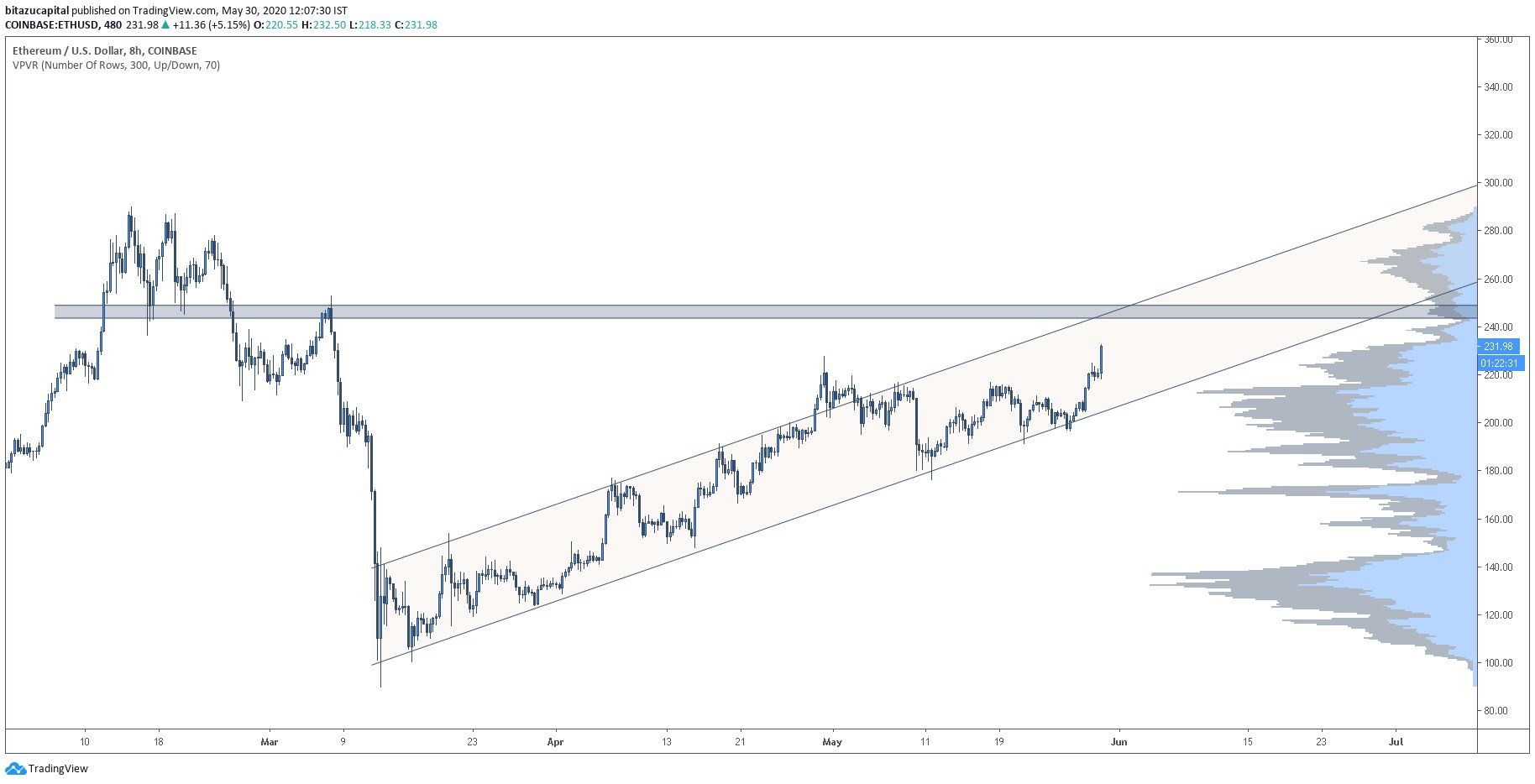 Qua biểu đồ cho thấy, ETH vẫn chưa vượt qua khu vực kháng cự lịch sử quan trọng, nhưng giành lại được xu hướng chính mà đã hỗ trợ cho đợt hồi phục từ đáy của tháng 3.