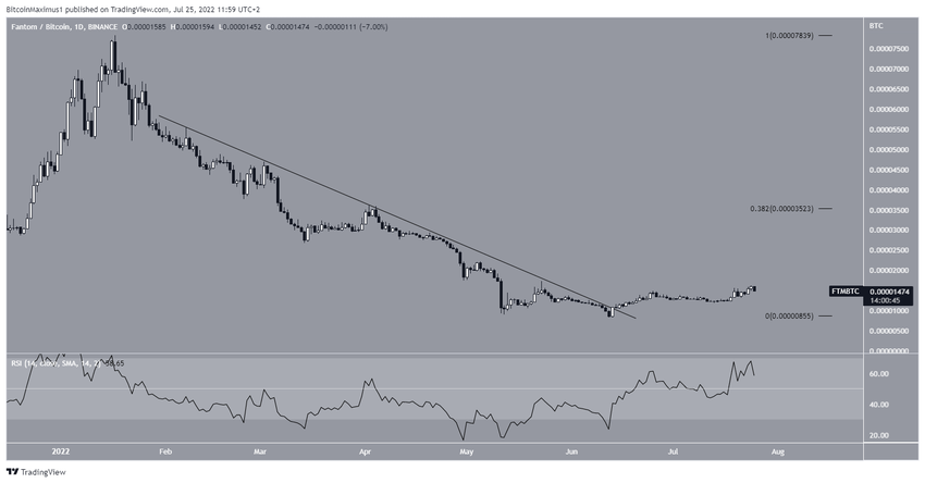 Fantom (FTM) đã tăng với tốc độ nhanh chóng kể từ khi bứt phá khỏi đường kháng cự giảm dần vào ngày 18 tháng 7.