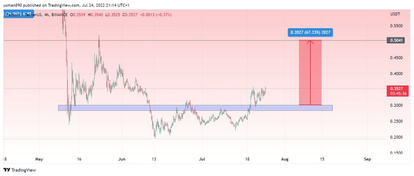 Giá FTM đã tăng lên kể từ khi đạt mức thấp 0.194 USD vào ngày 13 tháng 6. Vào ngày 18 tháng 7, FTM đã cố gắng thoát ra khỏi đường kháng cự giảm dần đã tồn tại từ ngày 23 tháng 5. Đà tăng giá đã đưa giá FTM lên mức cao nhất 0.368 vào ngày 24 tháng 7.