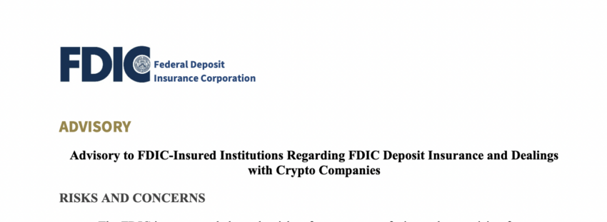 Vào ngày 29 tháng 7, Tổng công ty Bảo hiểm Tiền gửi Liên bang (FDIC) đã ban hành một lưu ý mới trong việc tư vấn. Qua đó Công ty này nhằm tái khẳng định rằng họ sẽ không bảo hiểm cho các tài sản kỹ thuật số.