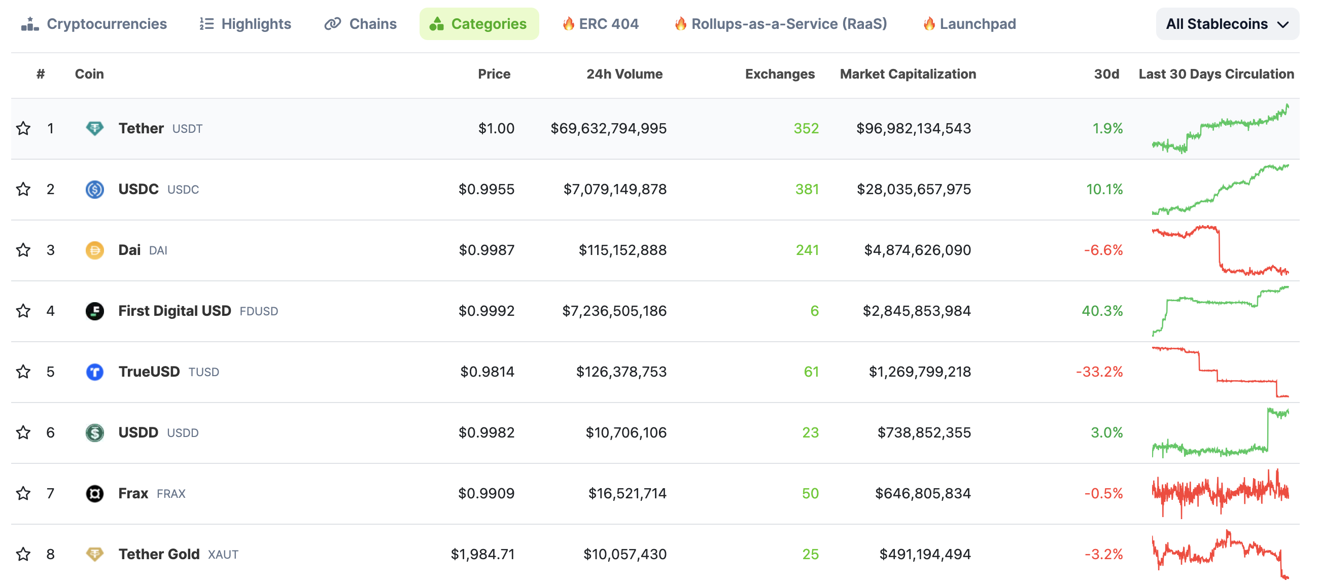 Cụ thể, các cặp giao dịch với FDUSD hiện chiếm khoảng 38% tổng khối lượng giao dịch giao ngay của Binance theo số liệu được BeInCrypto ghi nhận vào ngày 12/2. Với tỷ lệ hiện tại, chúng ta đã ghi nhận mức tăng đến gần 43% chỉ so với tháng trước. Có thể thấy đây là minh chứng rõ rệt nhất cho nỗ lực tạo lập vị thế của FDUSD trên bản đồ stablecoin. Theo dữ liệu ghi nhận từ CoinGecko, FDUSD hiện đã vượt mặt TUSD trở thành stablecoin lớn thứ 4 với vốn hoá hơn 2.8 tỷ USD. Trong khi đó TUSD bị đẩy xuống vị trí thứ 5 với vốn hoá bị đẩy lùi về vỏn vẹn chỉ còn gần 1.3 tỷ USD.
