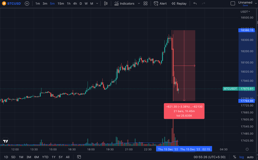 Cục Dự trữ Liên bang Mỹ (FED) tăng lãi suất lần 7 thêm 50 điểm cơ bản. Giá Bitcoin (BTC) giảm mạnh sau thông báo.