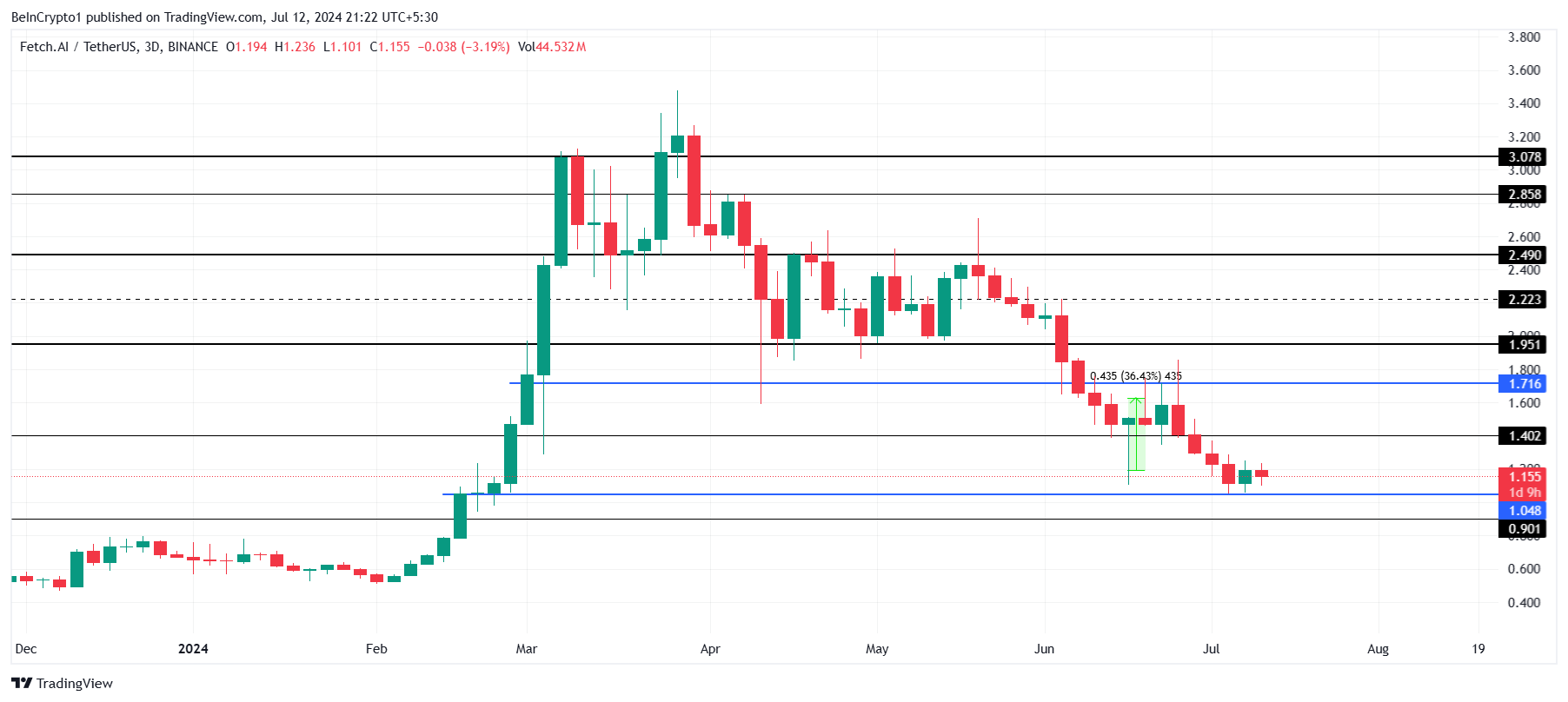 Dự đoán trong ngắn hạn giá FET dao động trong khoảng từ 1.04 USD đến 1.71 USD, biên độ này đã từng là khu vực tích lũy của FET trước đây. Sự thiếu lạc quan của nhà giao dịch có thể ngăn cản việc vượt qua giới hạn trên.