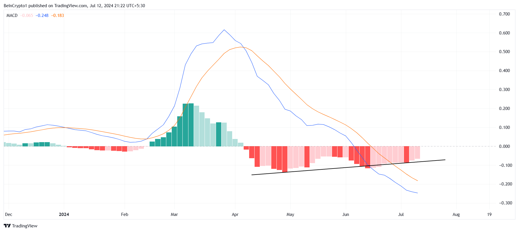 Ngoài ra, đường giá Fetch.ai còn thể hiện tín hiệu tăng khi đang hình thành của một mô hình đáy kép trên chỉ báo MACD-H. Mô hình này thường báo hiệu một sự đảo ngược mạnh mẽ về xu hướng giá, hỗ trợ thêm cho khả năng phục hồi và tăng giá trong tương lai.