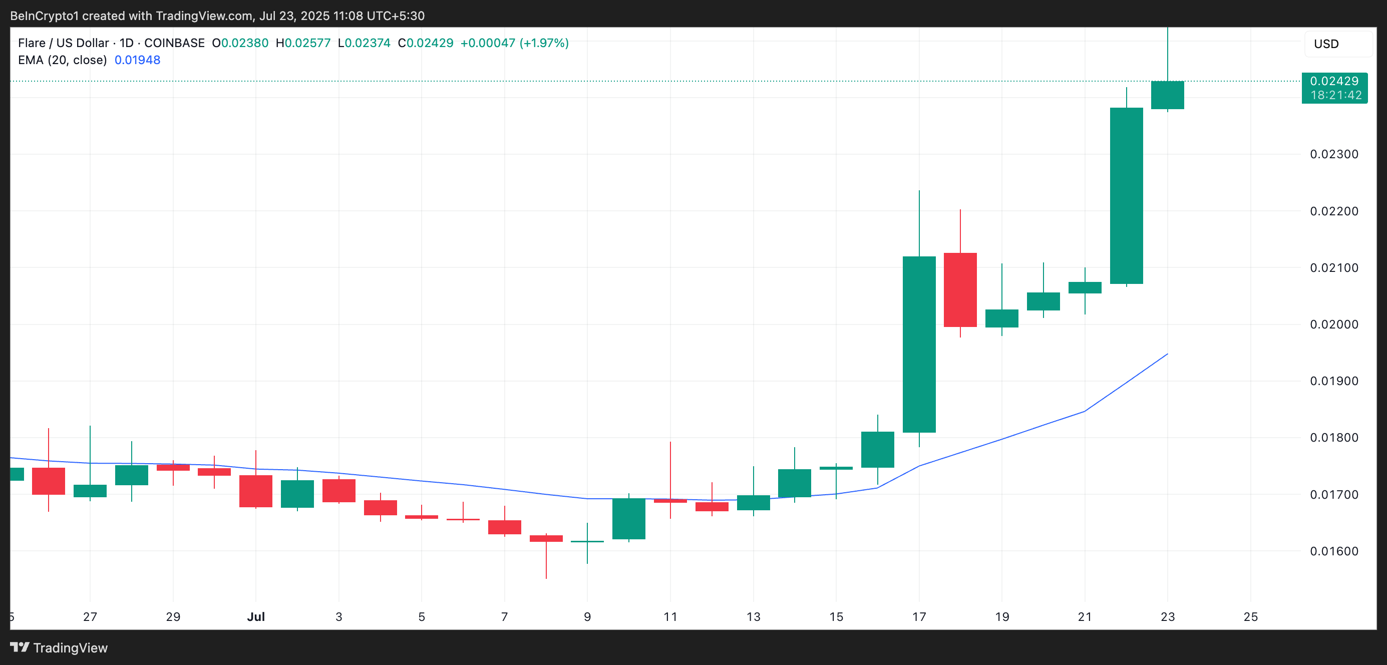 SponsoredHơn nữa, trên biểu đồ một ngày, FLR giao dịch trên đường trung bình động hàm mũ 20 ngày (EMA), hiện đang đóng vai trò là hỗ trợ động dưới giá của nó ở mức 0.01948 USD.