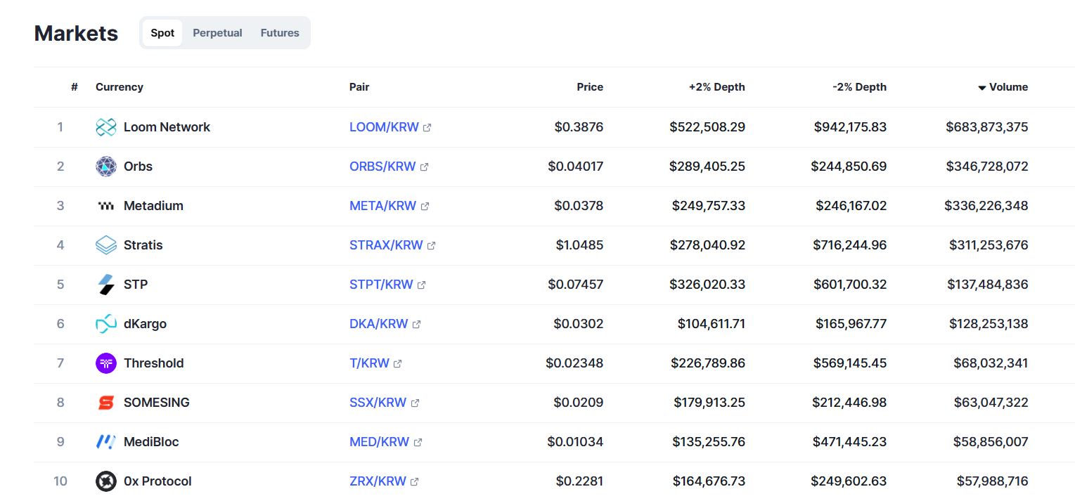 Theo dữ liệu từ CoinmarketCap, khối lượng giao dịch trong ngày của Upbit đạt gần 3 tỷ USD, trong khi đó của Binance đạt gần 4 tỷ USD. Upbit vượt qua tất cả các sàn giao dịch hàng đầu khác và xếp thứ 2 sau Binance về khối lượng 24h. Đây là một tốc độ gia tăng khối lượng đáng kinh ngạc.