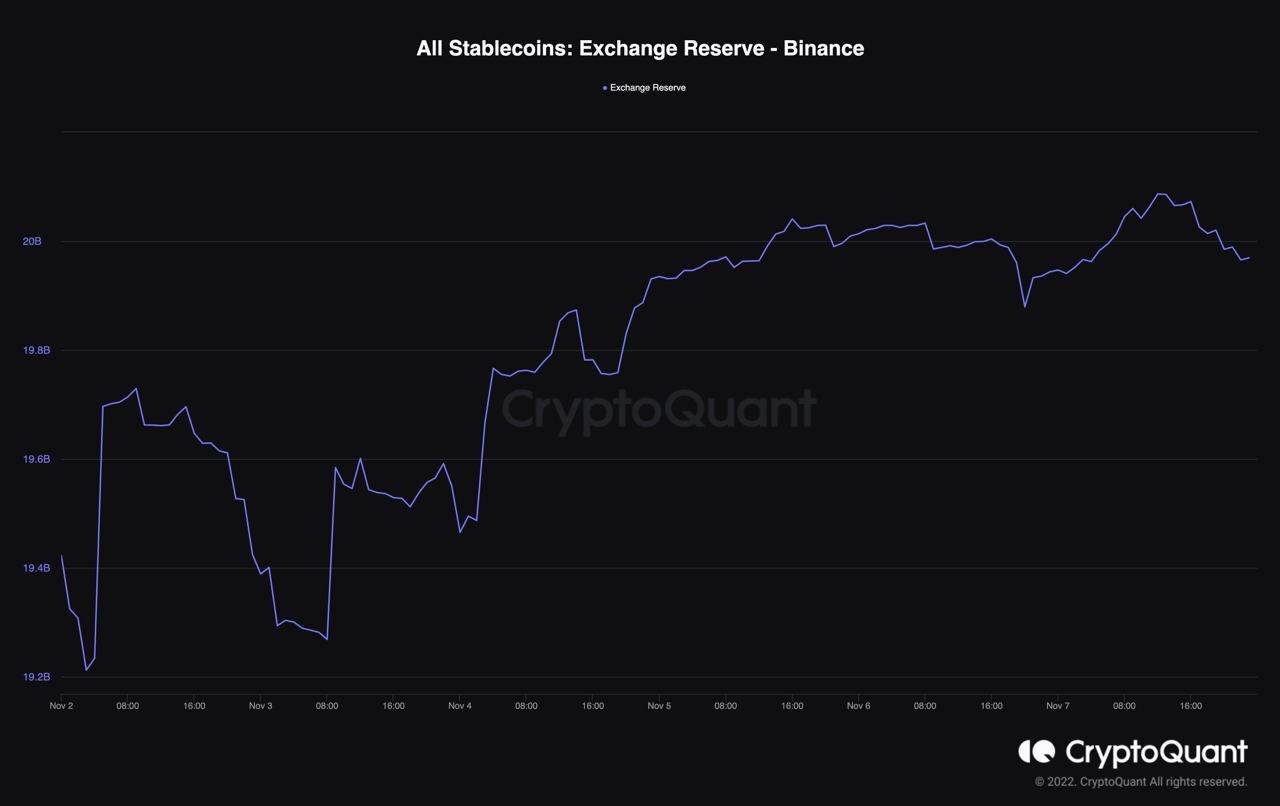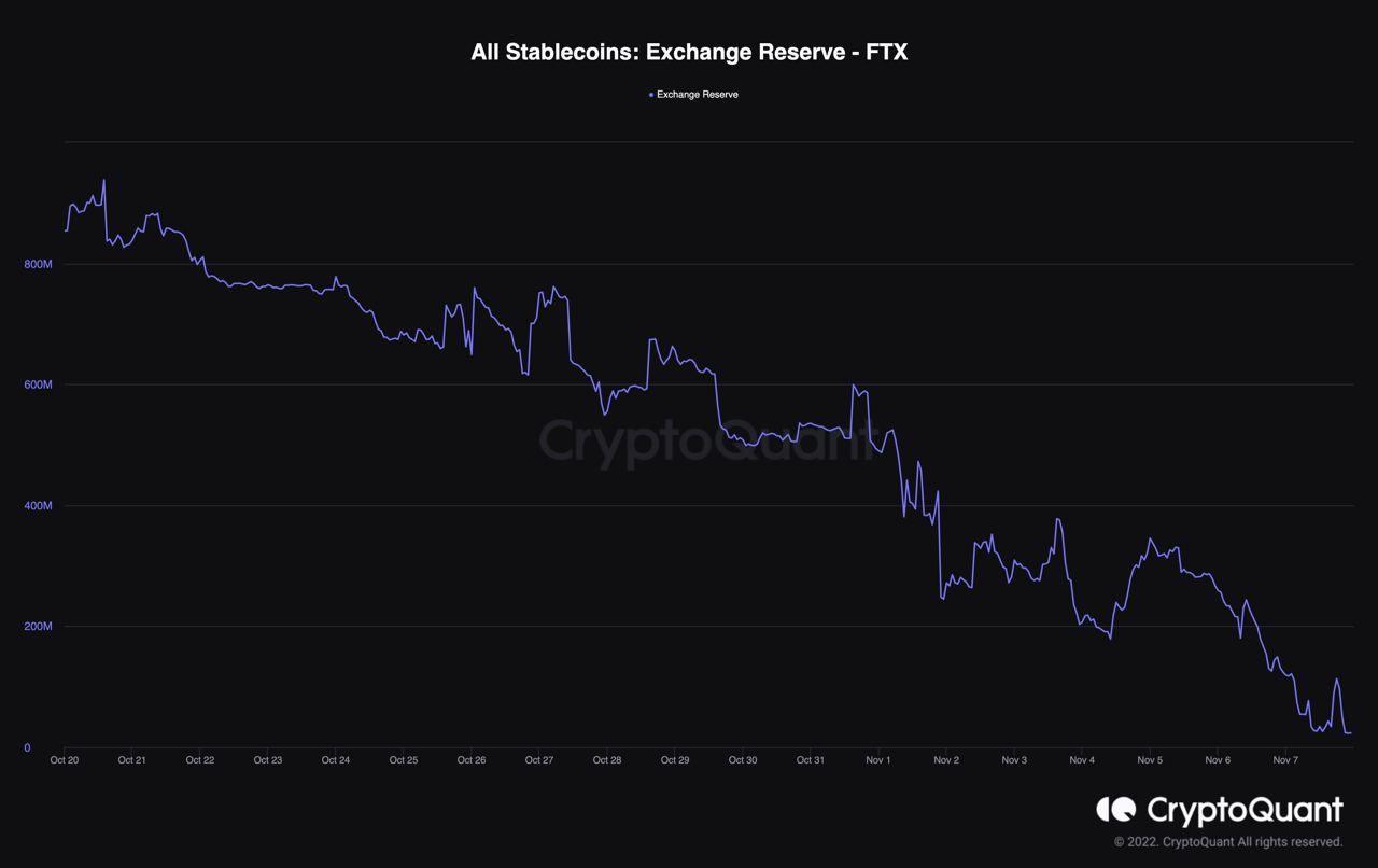 - Hai biểu đồ trên cho thấy, hai ngày gần đây lượng stablecoin trên FTX giảm mạnh và lập mức thấp nhất cả năm, thì lượng stablecoin trên Binance tăng liên tục. FTX đang hết sức bảo vệ giá token của mình.