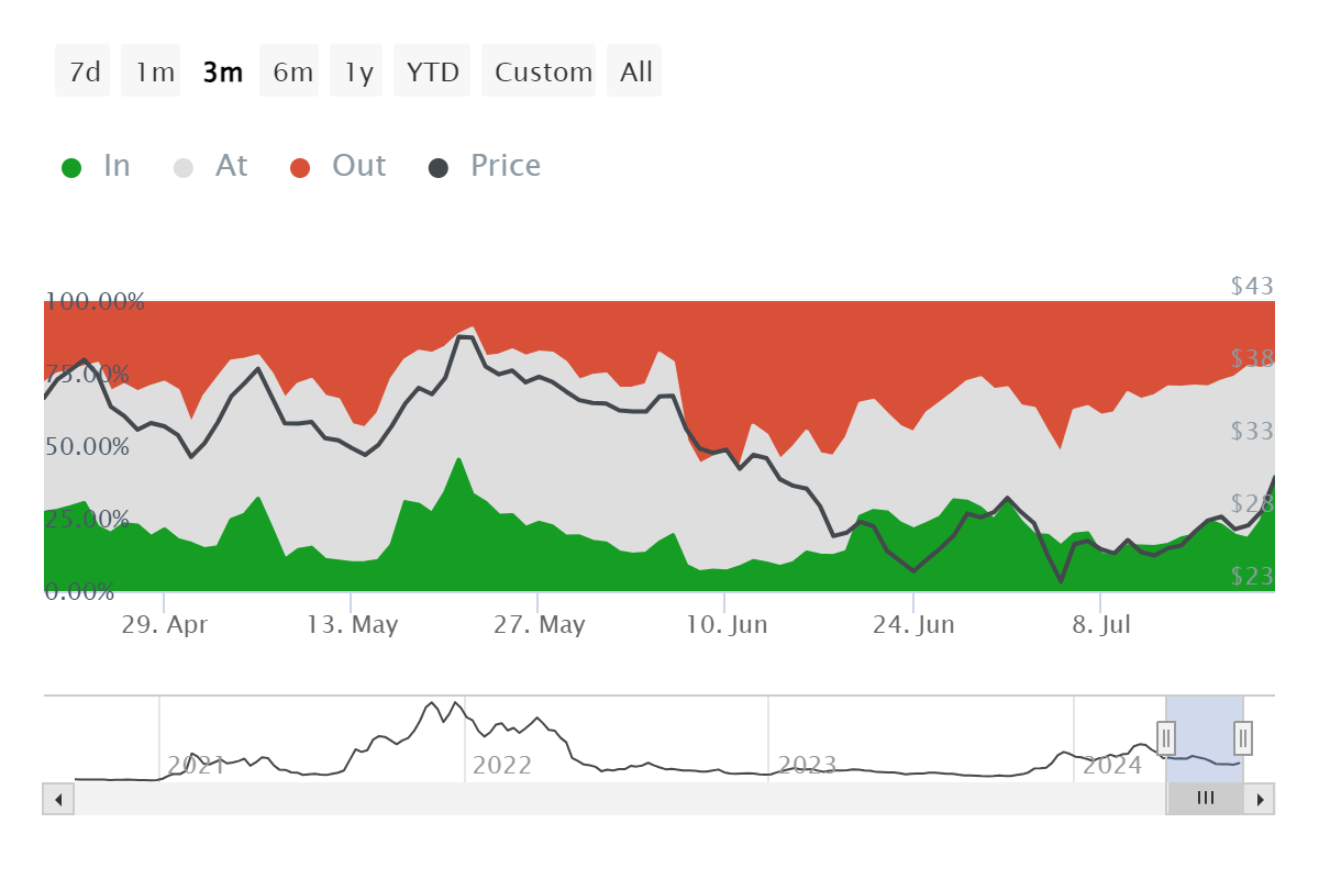 SponsoredĐiều này là bởi vì, theo chỉ số Global In/Out of the Money (GIOM), khoảng 11 triệu AVAX đã được mua trong khoảng từ 29 USD đến 34 USD. Lượng cung này, trị giá hơn 358 triệu USD, sẽ trở nên có lợi nhuận một khi giá của Avalanche vượt qua 34 USD. Tuy nhiên, khoảng 5 triệu AVAX đã đạt được lợi nhuận, khi giá đạt 32 USD, điều này cũng là một mối nguy tiềm ẩn.