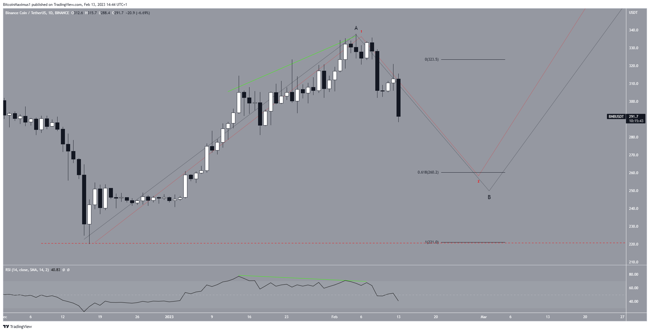 Thứ nhất, giá Binance Coin đã hoàn thành một chuyển động tăng gồm năm sóng. Vì vậy, bây giờ nó có khả năng đã bắt đầu một sự điều chỉnh. Số lượng sóng dài hạn vẫn chưa rõ ràng vì mức giảm liên tục có thể là một phần của sóng B (màu đen) hoặc sóng hai (màu đỏ). Tuy nhiên, có nhiều khả năng đây là sóng điều chỉnh (màu đen) hơn nếu giá BNB giảm xuống dưới mức hỗ trợ thoái lui Fib 0.618 tại 260 USD. Ngược lại, nếu giá bật lên trên mức đó, xu hướng vẫn là tiếp tục tăng. Dù là trường hợp nào, giá vẫn có khả năng tăng lên sau đó.