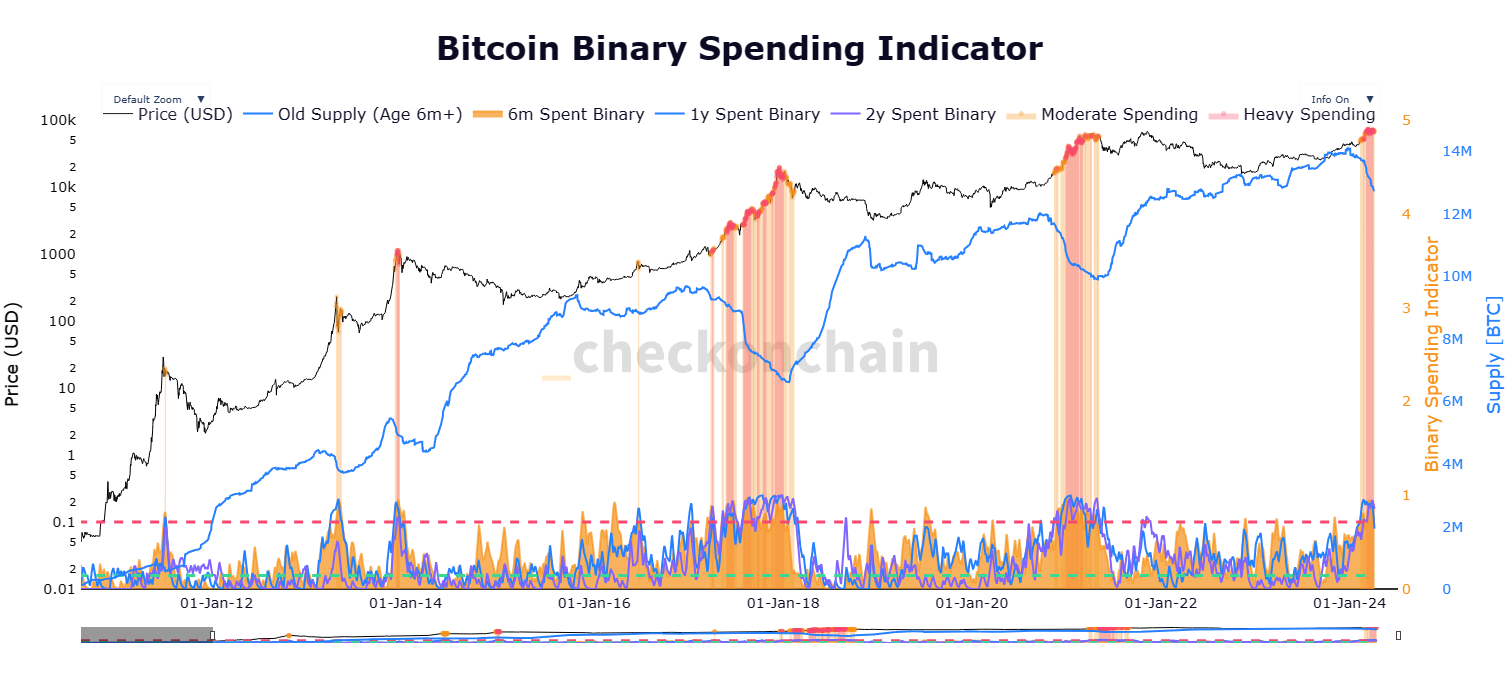 Tuy nhiên, một yếu tố chính khác có thể làm mất hiệu lực luận điểm tăng giá này là việc hiện thực hóa lợi nhuận của người nắm giữ dài hạn. Trong lịch sử, sau mức cao nhất mọi thời đại mới, những người nắm giữ này có xu hướng đặt lợi nhuận, dẫn đến sự điều chỉnh giá Bitcoin trong những tuần tới.