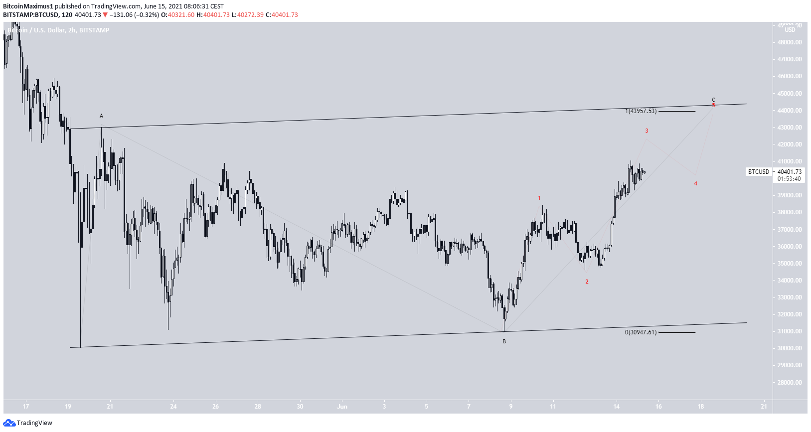 BTC đã được giao dịch bên trong một kênh song song tăng dần kể từ ngày 19 tháng 5. Có vẻ như kênh này chứa cấu trúc điều chỉnh A-B-C.