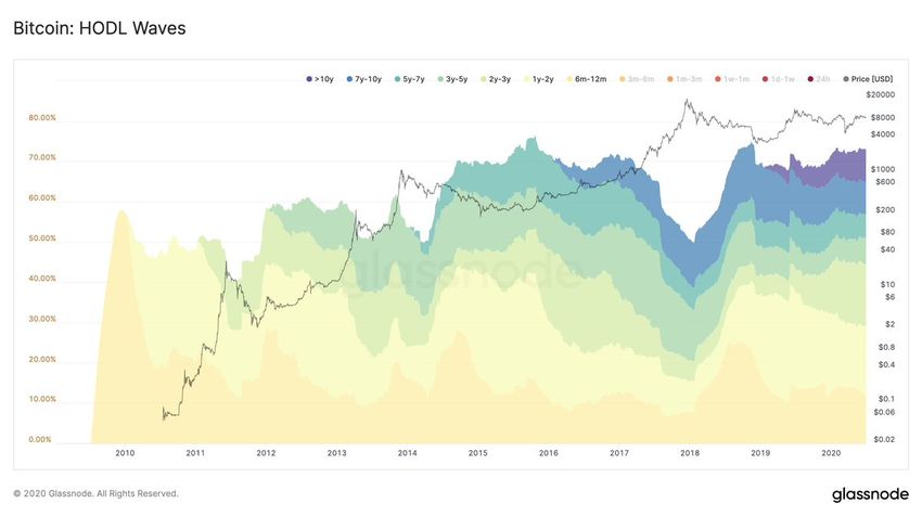Theo dữ liệu từ Glassnode, chỉ có 27% nguồn cung đang lưu thông của Bitcoin đã được dịch chuyển trong năm 2020. Phần còn lại vẫn đang nằm yên.