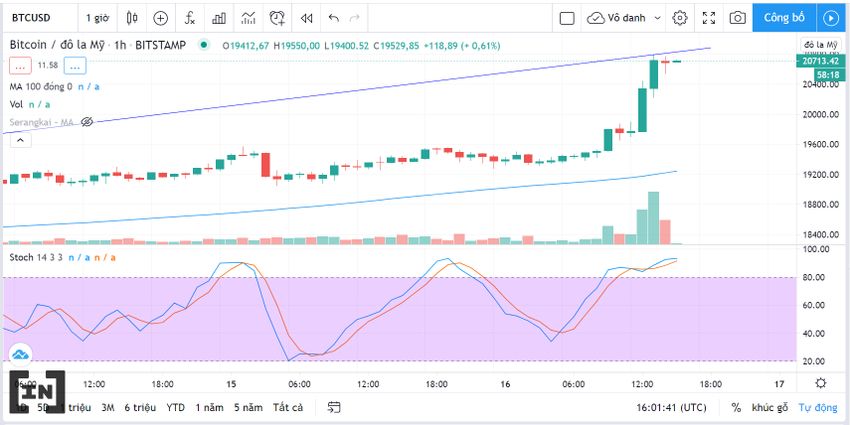 Vào tối ngày 16/12, giá Bitcoin lần đầu tiên chạm mức 20,000 USD sau nhiều lần bị khuất từ. Dường như, sự nỗ lực từ áp lực mua cùng nhiều đợt giao dịch đáng chú ý đã được đền đáp.
