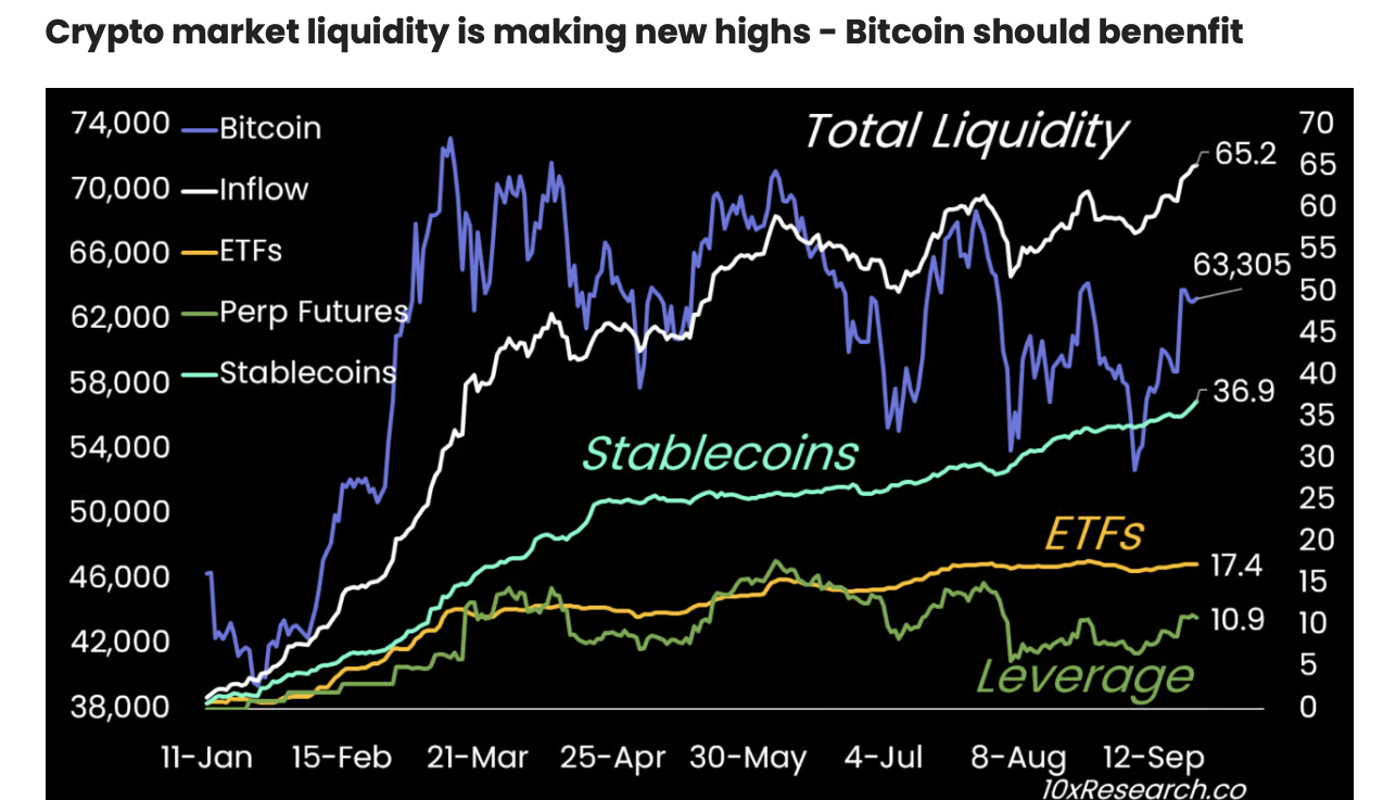 Thú vị là, dự báo này phù hợp với dự đoán của BeInnCrypto tuần trước rằng giá Bitcoin sẽ đạt một đỉnh cao mới. Để hỗ trợ luận điểm này, chúng ta cần lưu ý rằng tính thanh khoản của thị trường tiền điện tử đang đạt mức cao mới. Như vậy, BTC có thể hưởng lợi từ dòng tiền này.