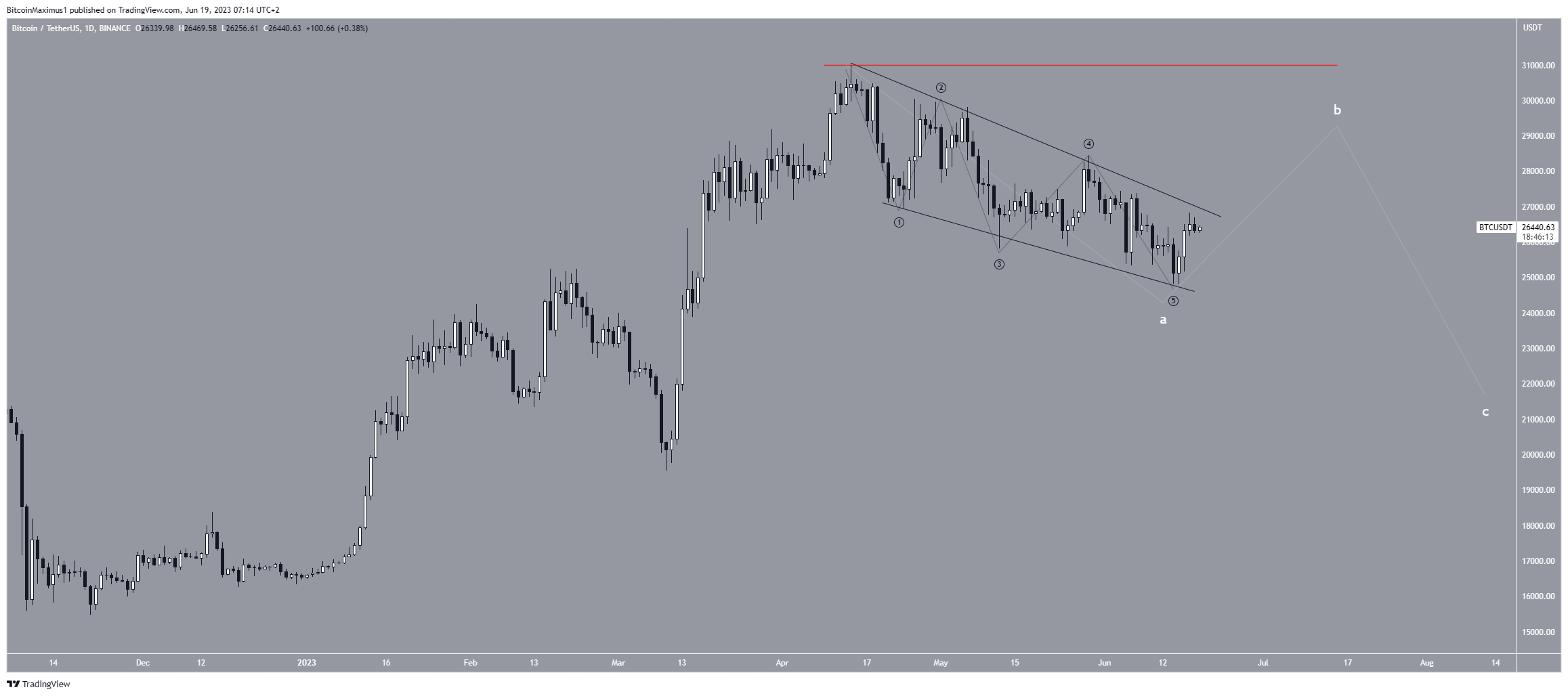 Phân tích kỹ thuật khung thời gian hàng ngày cho thấy giá BTC đã lao dốc trong một kênh song song giảm dần kể từ đầu tháng 4. Các kênh như vậy được coi là các mô hình điều chỉnh. Do đó, một cú breakout vượt ra khỏi kênh là trường hợp có khả năng xảy ra nhất trong tương lai.