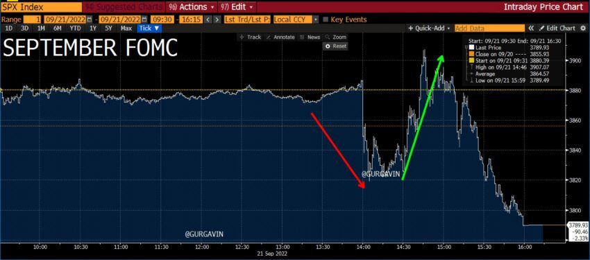 SPY là một ETF được hỗ trợ bởi cổ phiếu của các công ty niêm yết trên S&P 500, trong khi SPX là một chỉ số lý thuyết được định hướng bởi giá của S&P 500. Nhà phân tích Gurgavin chỉ ra rằng mỗi tháng, thị trường chứng khoán sụt giảm vào lúc 2:00 chiều EST khi việc tăng lãi suất được đưa ra và phục hồi vào lúc 2:30 chiều EST khi Jerome Powell phát biểu.